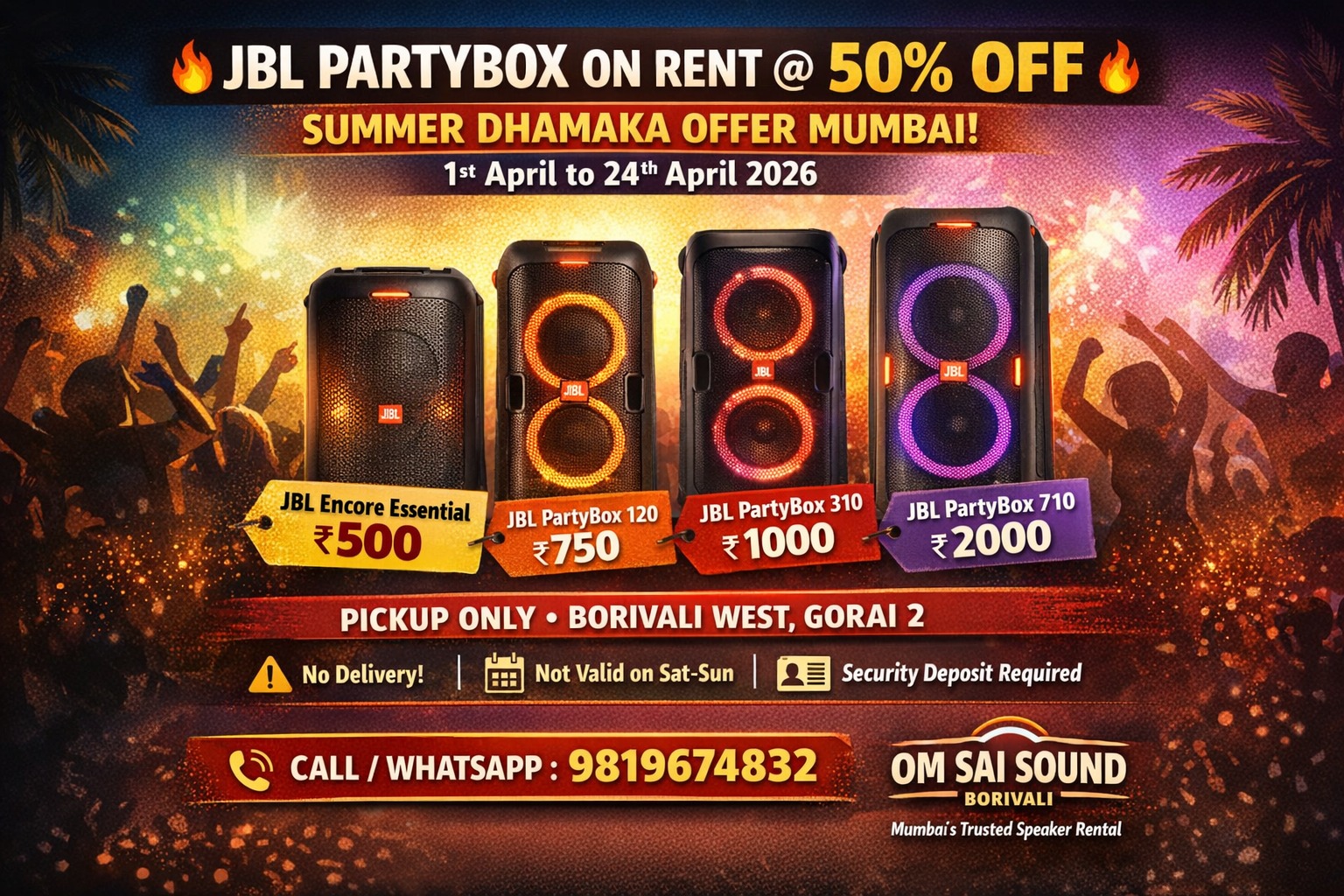 🔊 JBL PartyBox Summer Offer – 50% OFF on Rent | Om Sai Sound Mumbai JBL PartyBox...